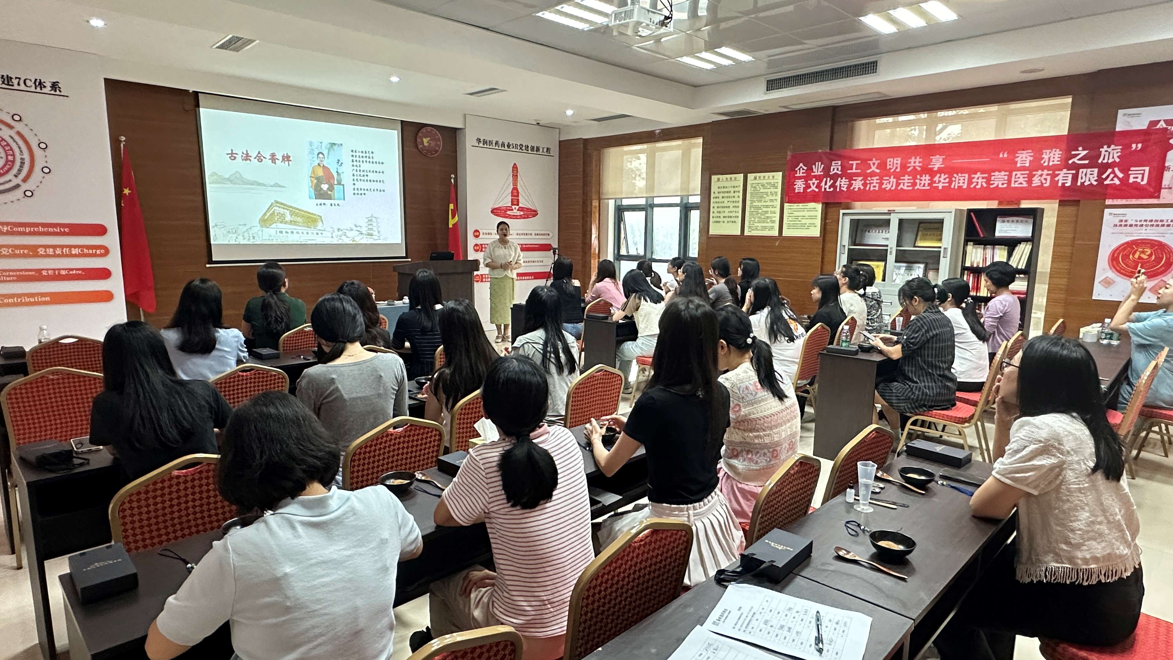 6月18日,東莞市寮步鎮(zhèn)宣傳教育辦公室(宣教辦)、東莞市沉香博物館聯(lián)合走進華潤東莞醫(yī)藥有限公司(以下簡稱“公司”),舉辦“香雅之旅,沉香文化走進企業(yè)”活動,公司女員工積極參與。