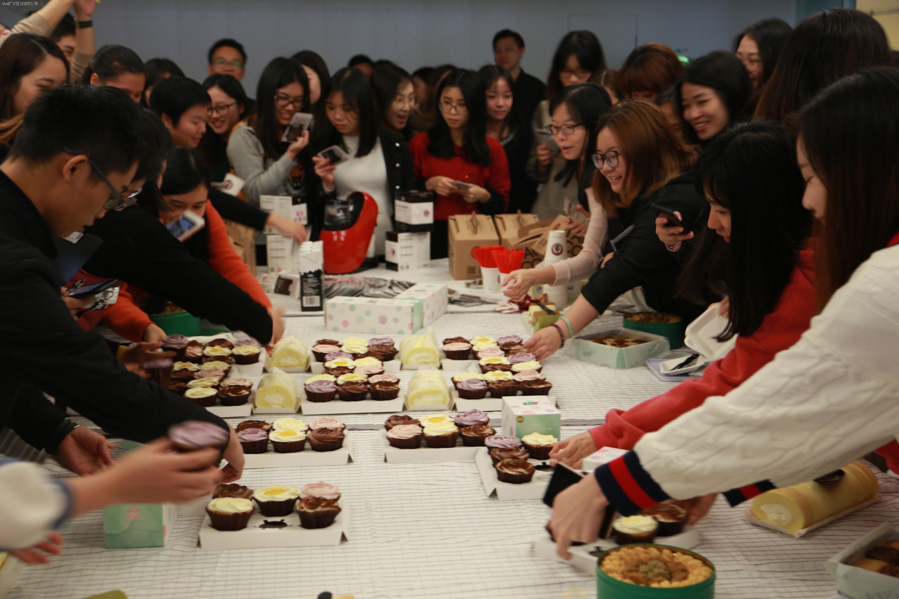 今年正值華潤八十華誕,工會的工作人員特意把蛋糕擺出“80”的造型,以此向華潤集團致敬!別致的造型也引得大家歡呼尖叫,紛紛圍觀拍照。